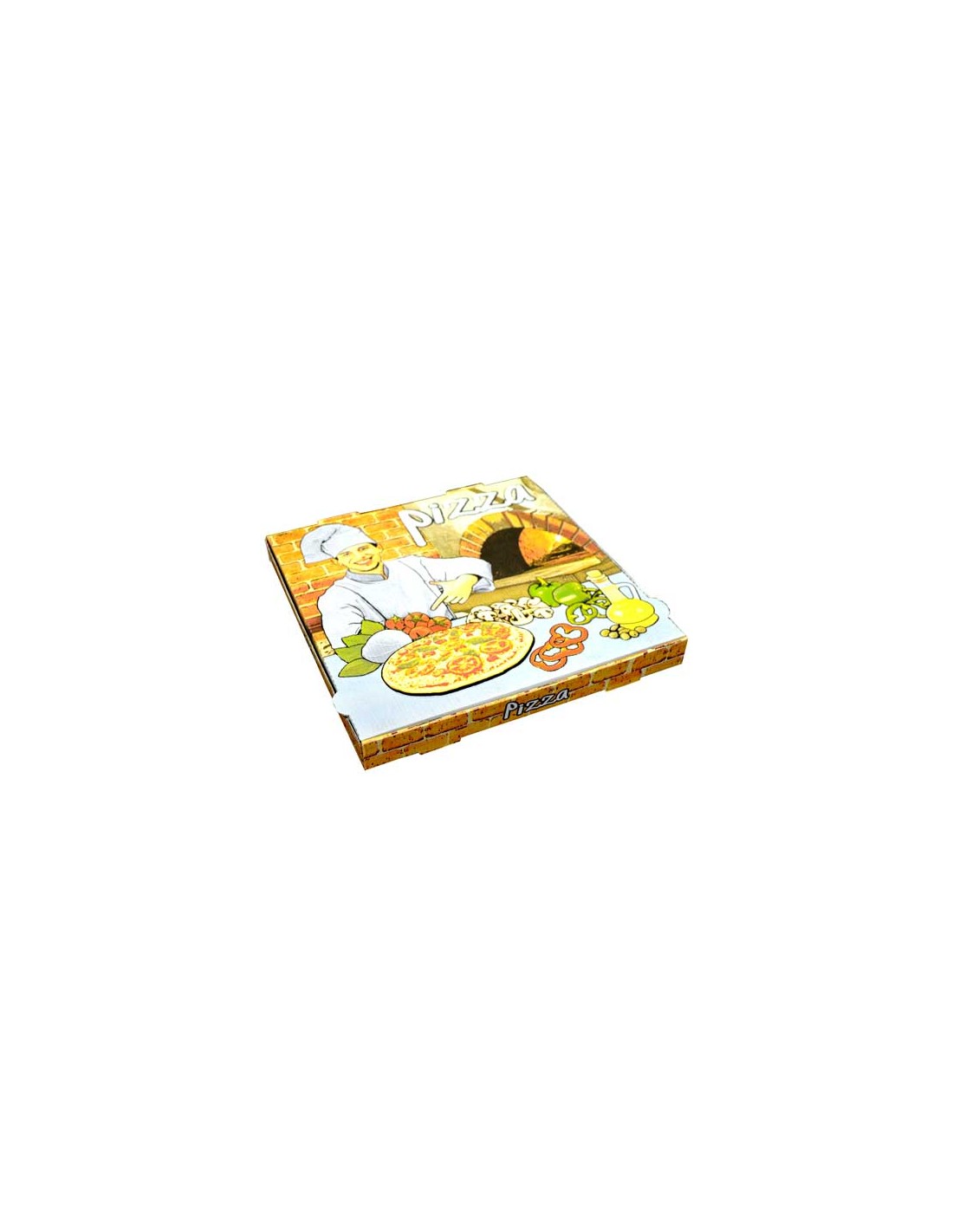 Caja cartón para pizza familiar tamaño 40x40x4. Paquetes de 50 unidades de cajas de facil montaje.